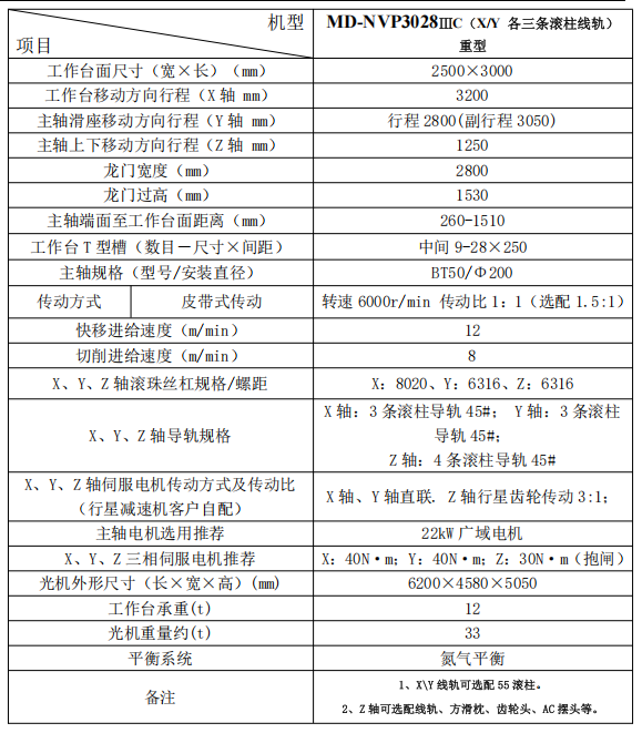 机型:MD-NVP3028ⅢC重型